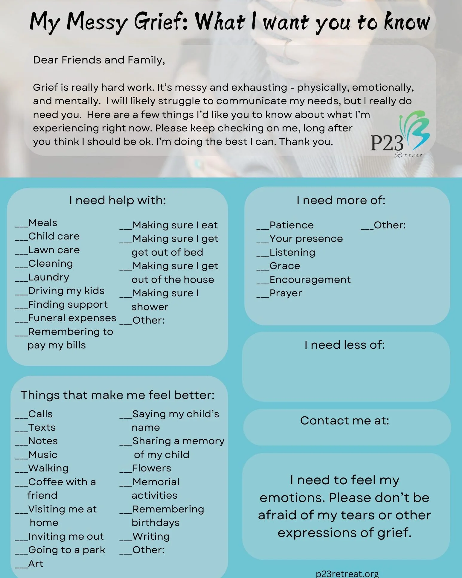 βHaving experienced the death of a child ourselves, we founded P23 Retreat as a tangible way to encourage and love others while offering something practical that can have both immediate and lasting benefit to the family as part of their emotional health and healing.β
