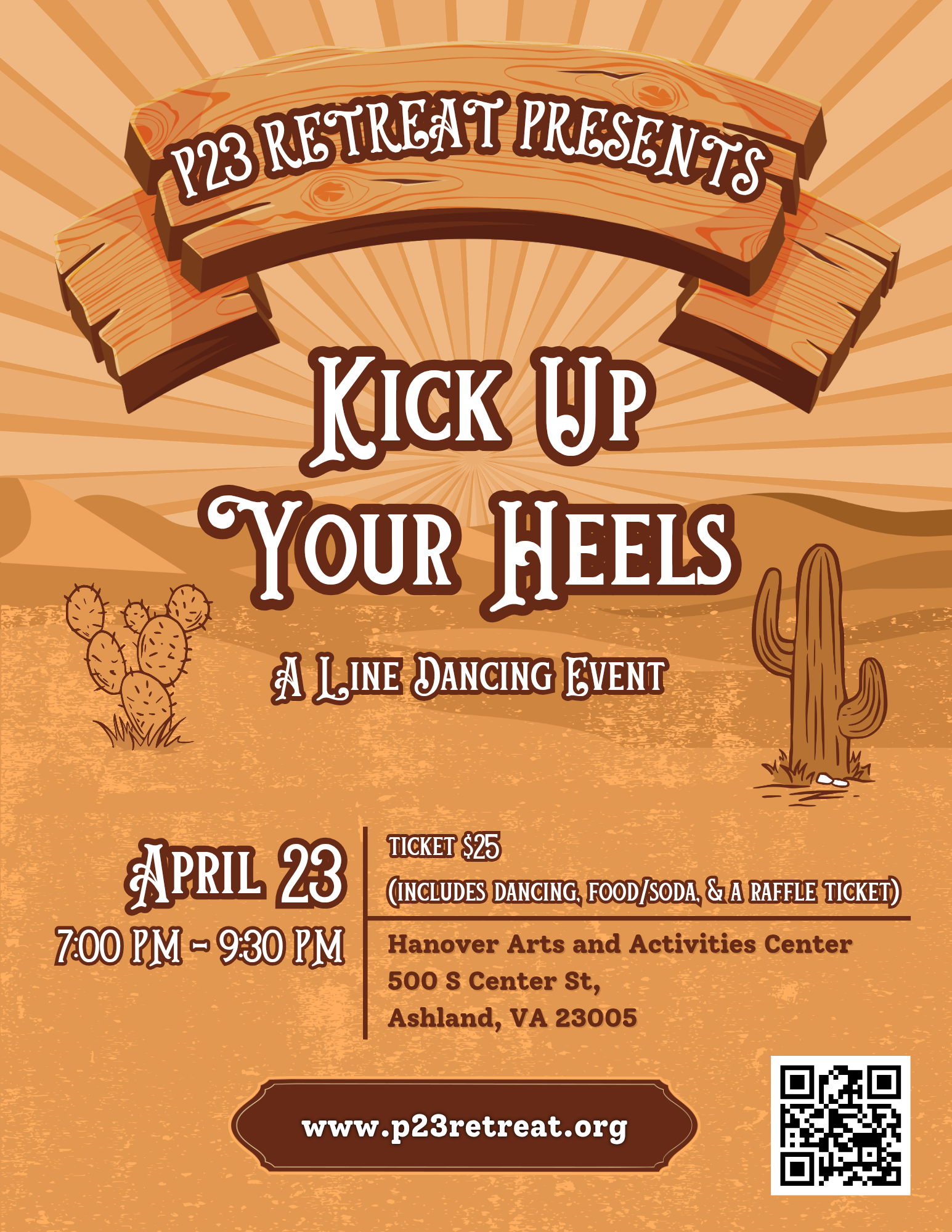 P23 Retreat Presents Kick Up Your Heels - A Line Dancing Event. It will be a fun night of dancing, laughter, and friends to help P23 Retreat, a nonprofit that supports grieving parents with healing retreats and compassionate care.